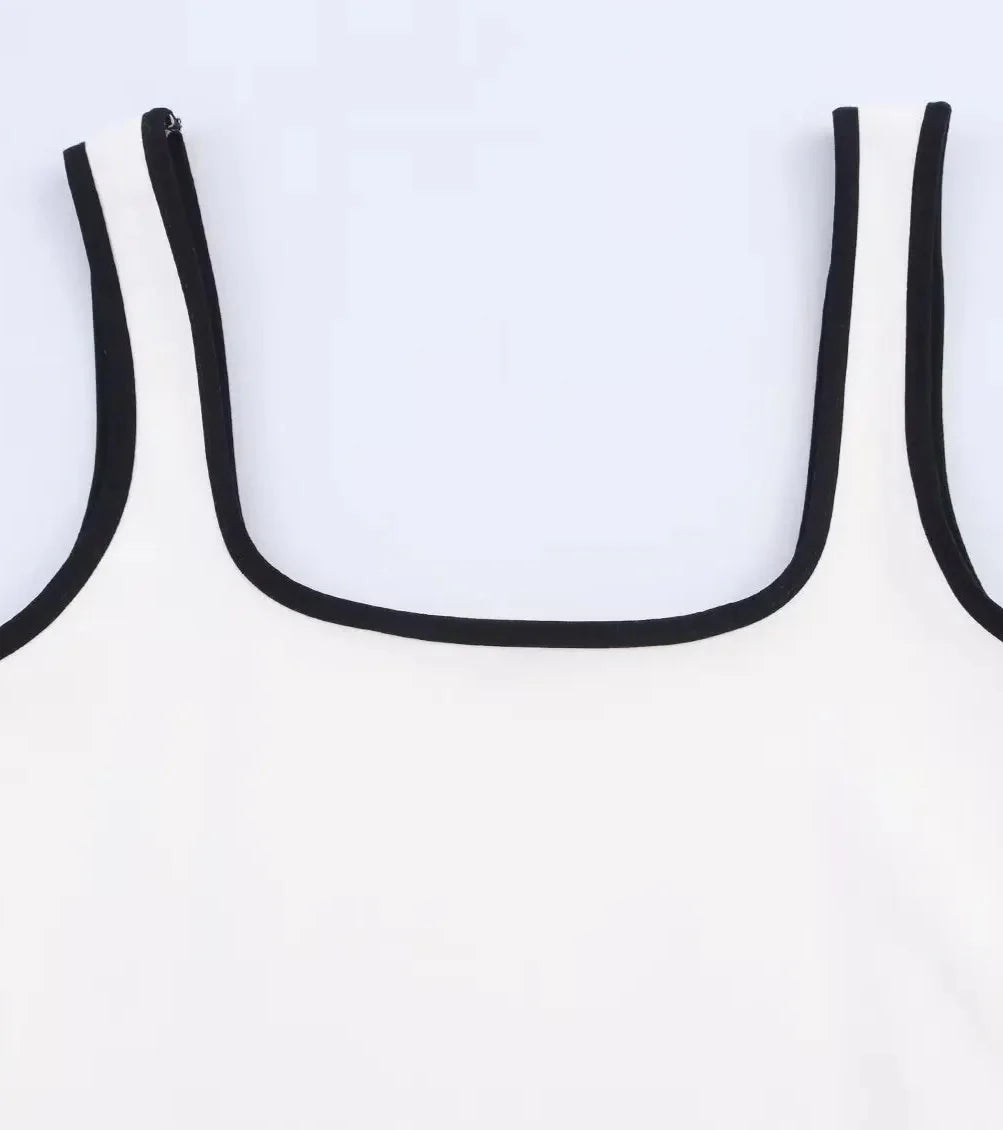 Embrace minimal elegance in this beige mini dress, featuring bold black contrast trim and a flattering sheath silhouette. Designed for sun-filled days and breezy evenings, this knit sleeveless dress transitions seamlessly from city brunches to evening walks by the shore. If you’re looking for a timeless mini that stands out with clean lines and modern detail, this is your essential summer look.