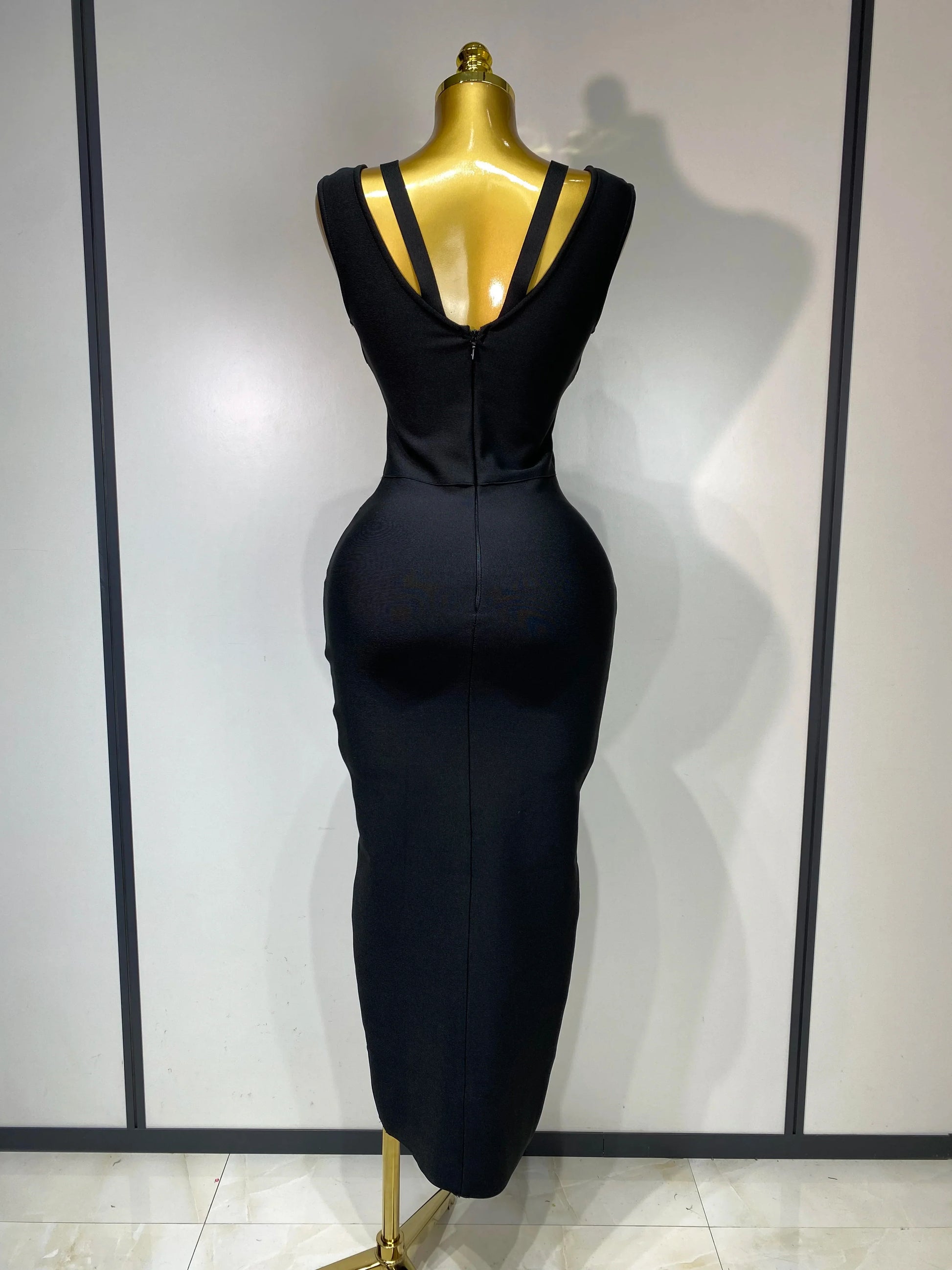 Specification for Women's Black Elegant V-Neck Sequinned Bodycon Gown