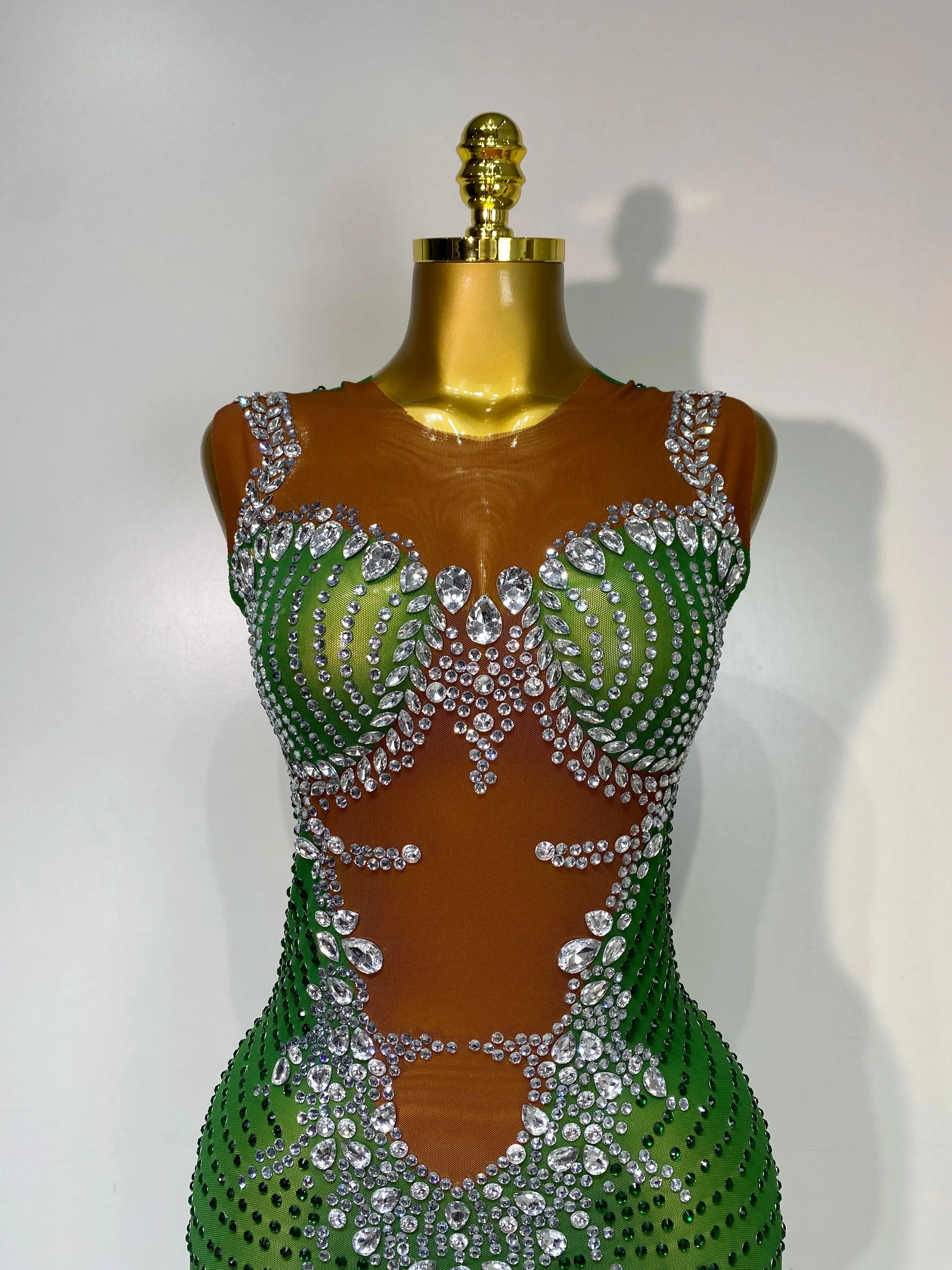 Black & Green Sparkly Rhinestone Mesh Bodycon Dress