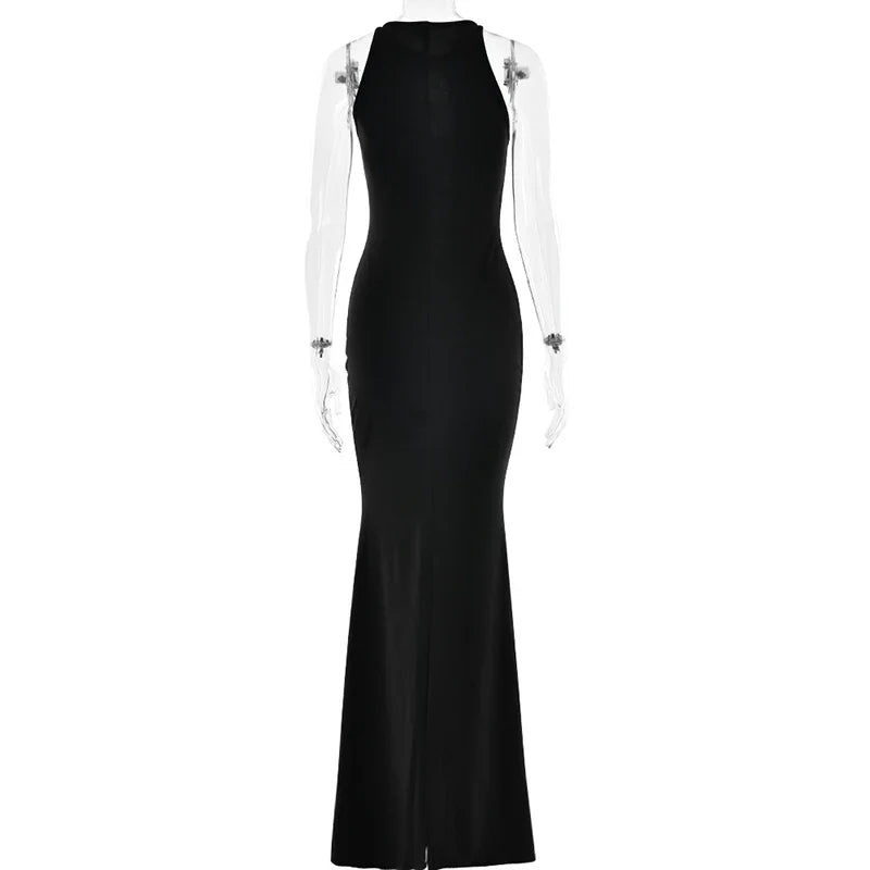 Make a show-stopping entrance with our Black Hollow Out Pearl Tassel Maxi Dress, an alluring and elegant choice for club nights, parties, and special occasions. This stunning long Dress features intricate hollow-out details, delicate pearl tassels, and a sleek bodycon silhouette, all crafted to highlight your figure beautifully. Imagine yourself radiating confidence and sophistication as you glide through any event. Crafted with slight stretch elasticity from a polyester and spandex blend, this slim-fit Dress offers exceptional comfort and a figure-hugging drape. Its O-neckline, sleeveless style, and natural waistline enhance its elegant sheath profile, making this pullover maxi Dress your ideal choice for a chic and unforgettable ensemble that transcends seasons.