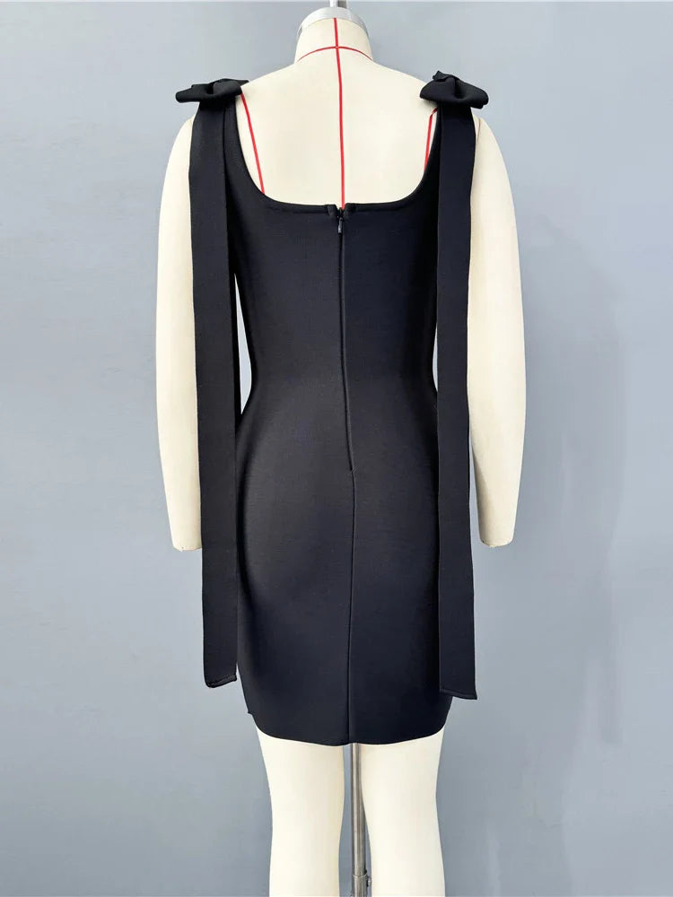 Black Rhinestone Bow Bandage Dress | Sleeveless Mini Gown