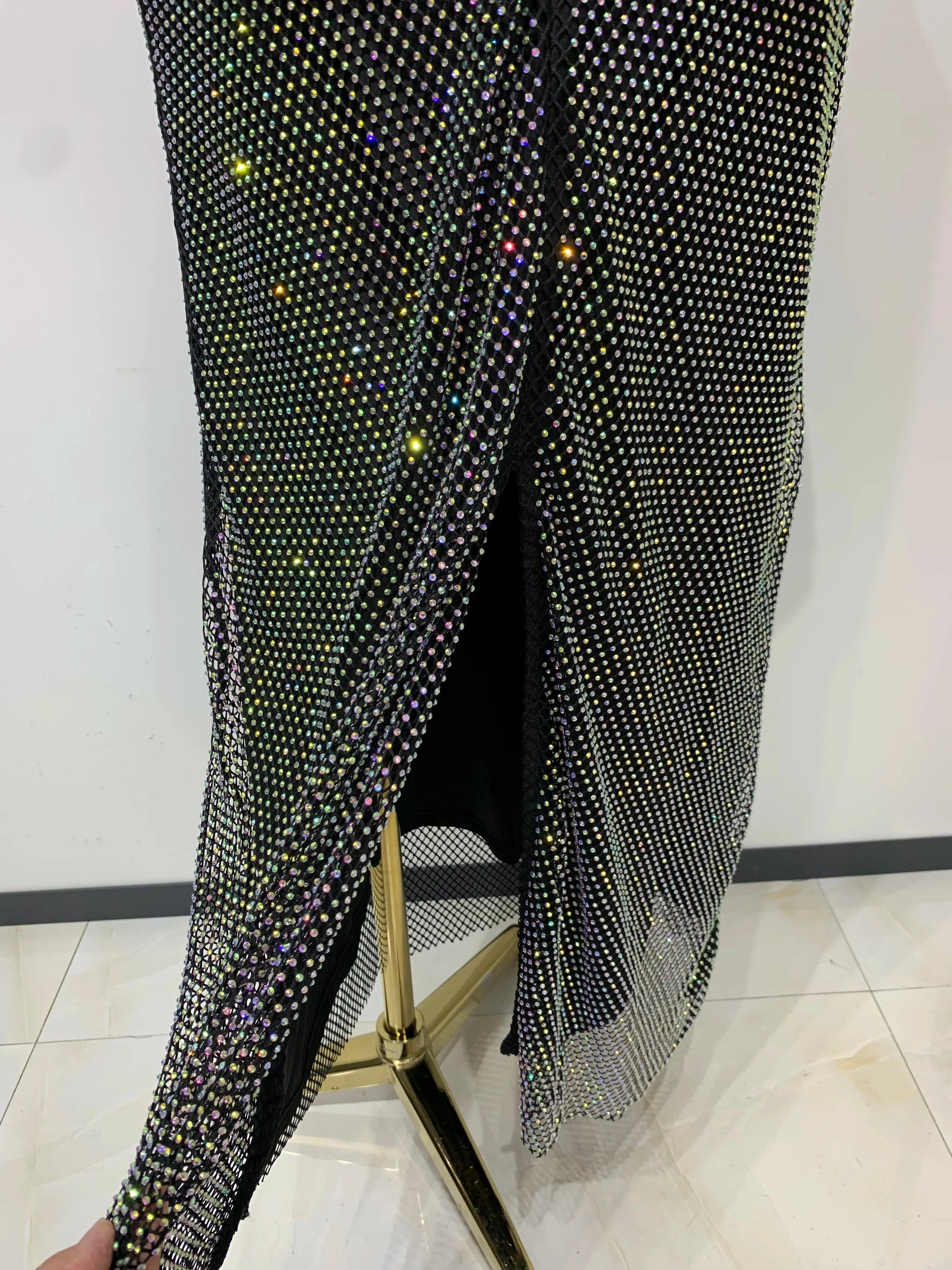 Black Rhinestone Corset Top & Sequin Skirt Set