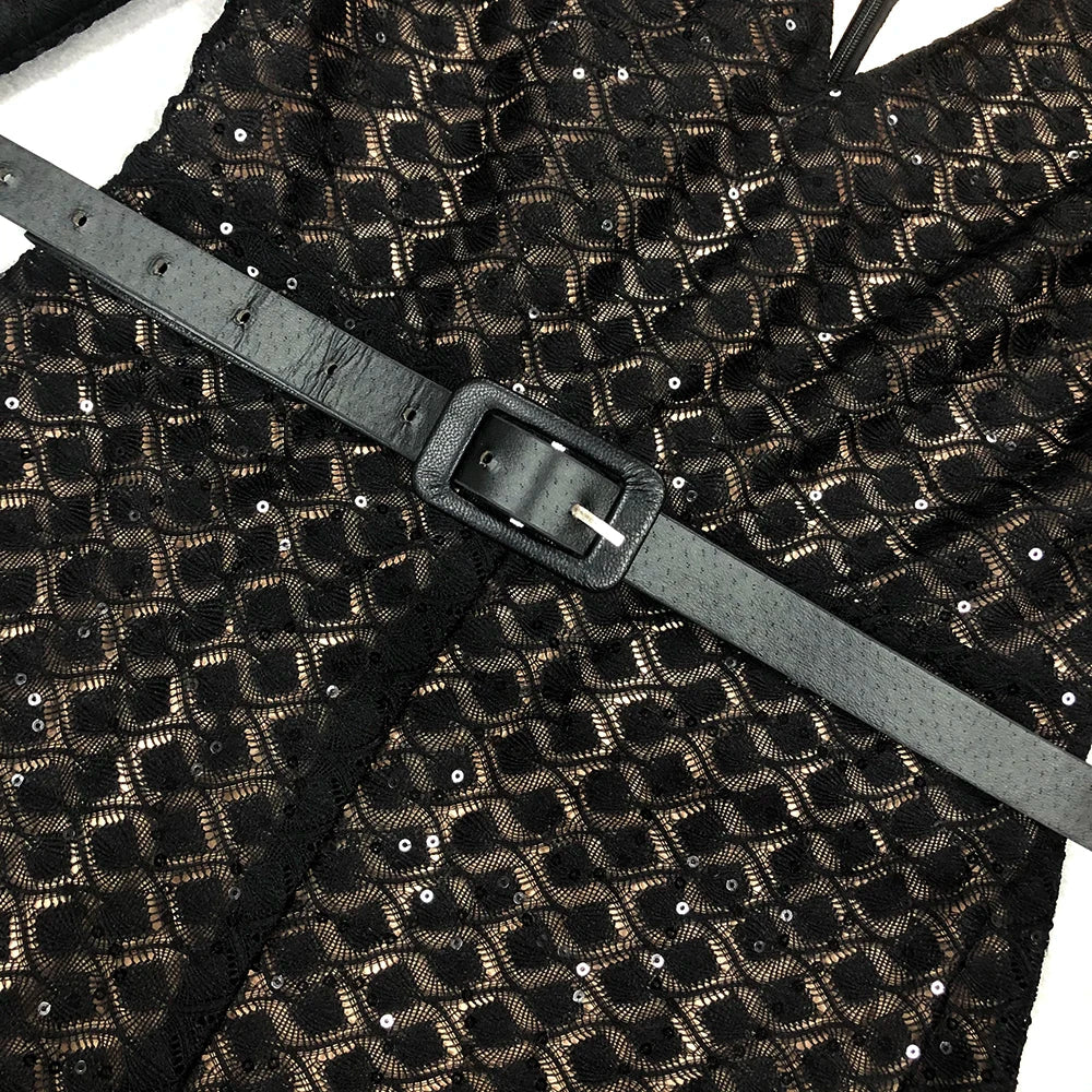 Black Sequin Feather Bodycon Jumpsuit with Belt