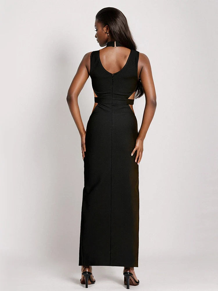 Make a dramatic entrance in this black sleeveless mesh patchwork bandage dress, designed for club nights, parties, and elegant evenings. Featuring a halter neck and ankle-length sheath silhouette, this dress emphasizes curves with medium stretch fabric and alluring hollow-out details. Perfect for women seeking a bold, sexy, and sophisticated look for summer events and nightlife.