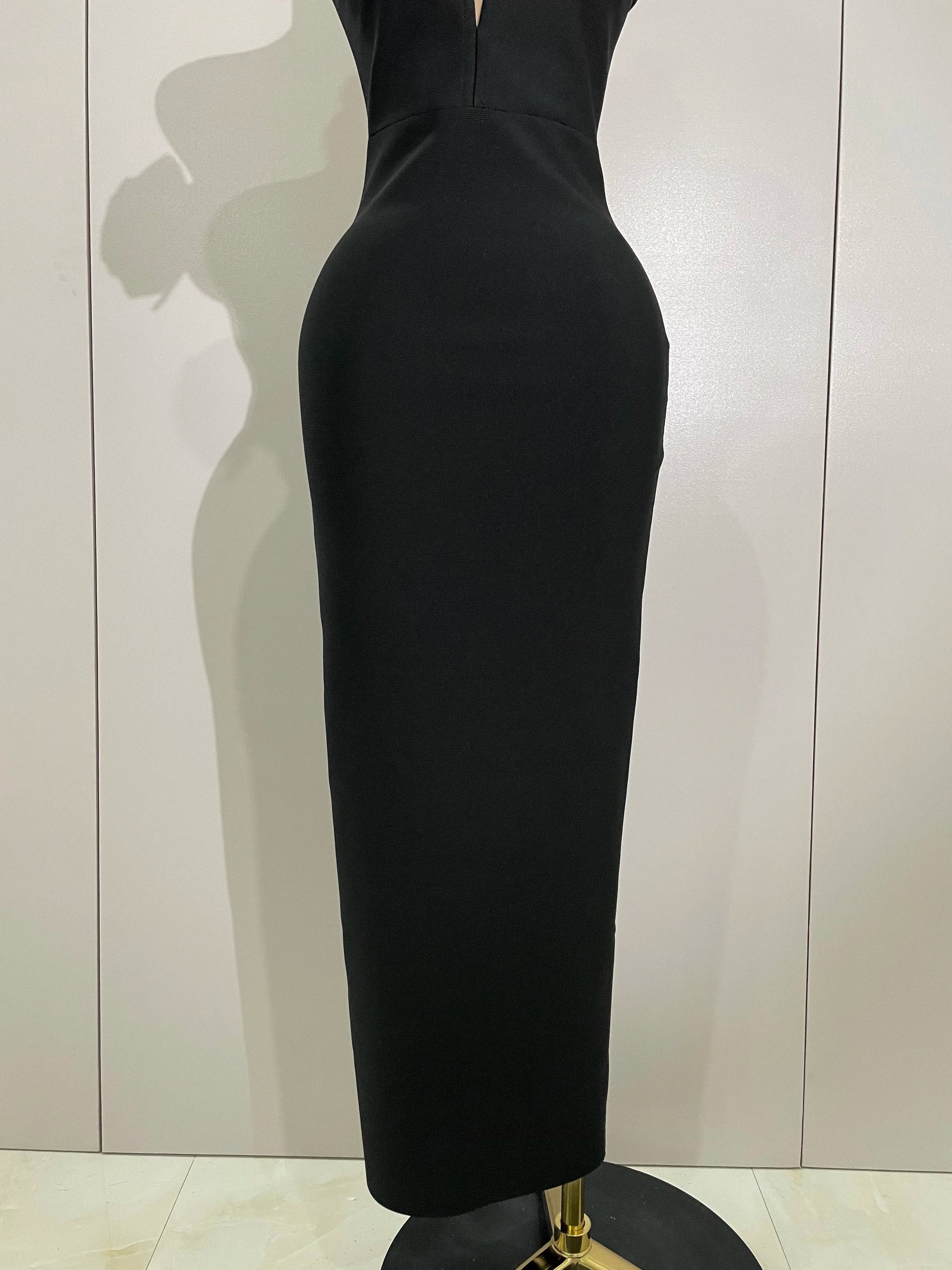 Step into Spring 2025 with this sleek Golden Atelier Black Strapless Ankle-Length Dress. Crafted from polyester with a slight stretch elasticity, this slim-fit dress features a trendy strapless neckline and a sleeveless design. It boasts a straight silhouette with a natural waistline and is adorned with elegant appliques. The solid pattern and ankle length complete this chest-wrapping type dress, available in Black, with a convenient zipper closure, perfect for club or party events across all seasons.