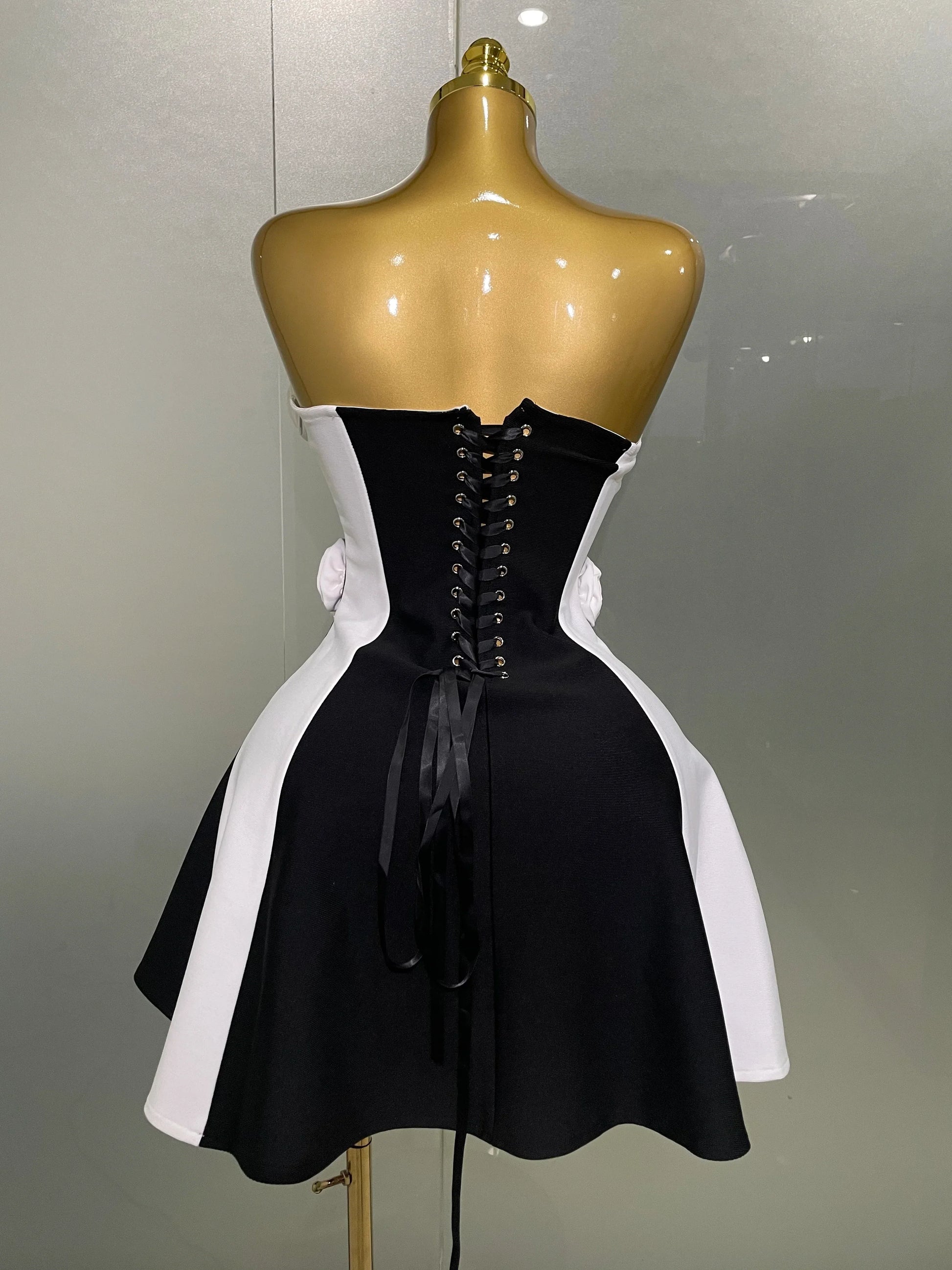 Specification for Women's Black & White Flower Strapless Mini Dress