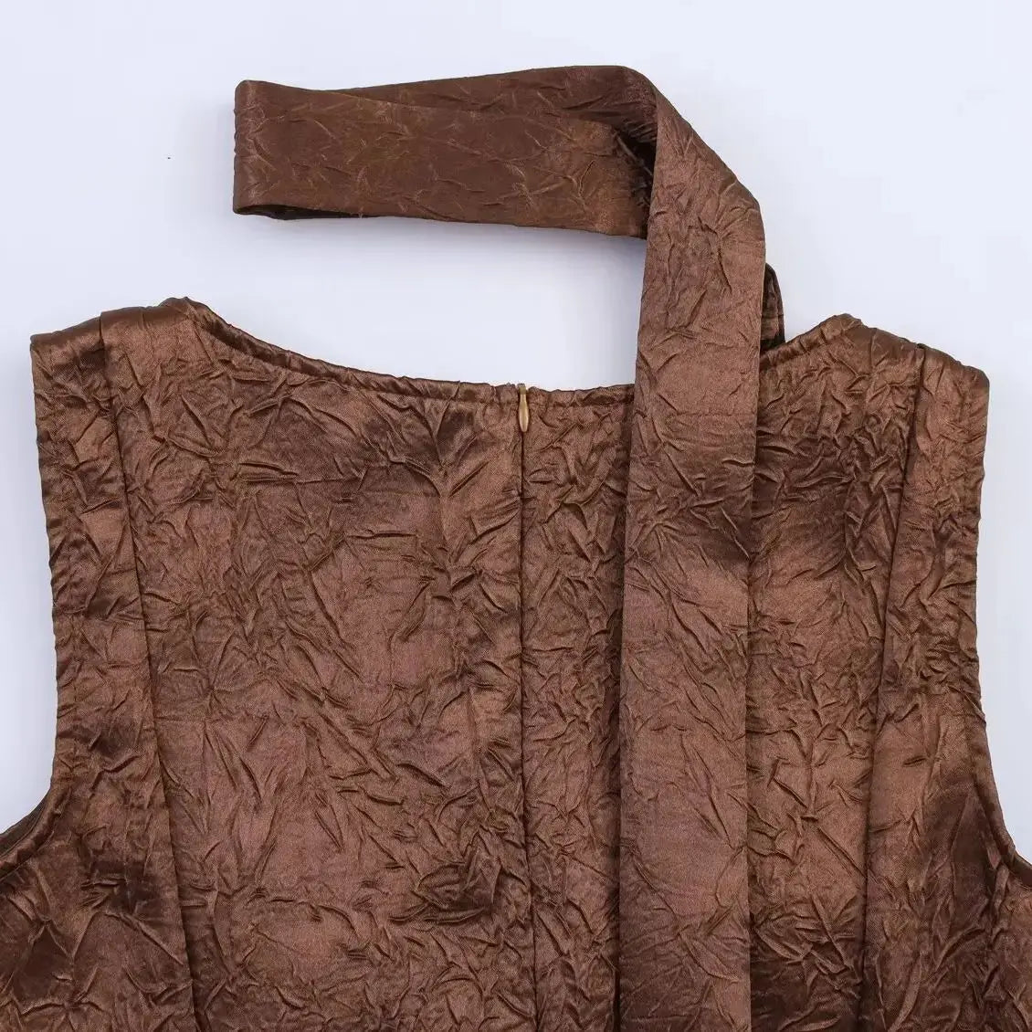 Refined yet playful, this brown A-line midi dress brings modern princess style to your autumn wardrobe. The structured sleeveless bodice, elegant square neckline, and mid-calf hem blend classic sophistication with easy movement—while the optional sash lets you accentuate your waist. The rich, earthy brown shade and swooshy skirt make this dress a standout for everything from brunches to dinner parties, autumn weddings, and seasonal celebrations.