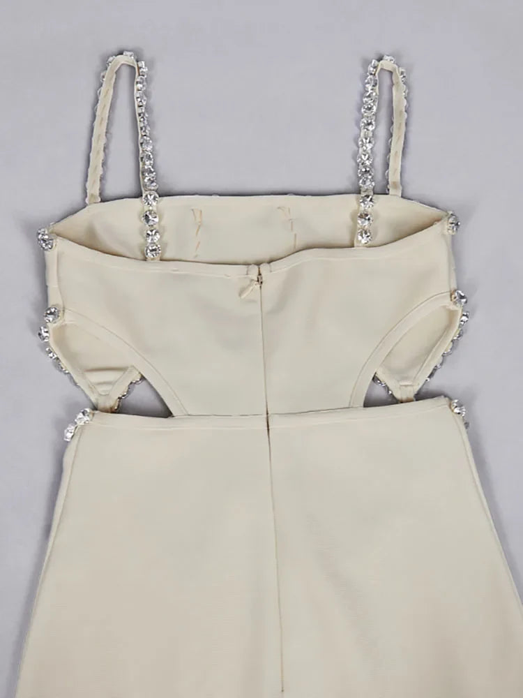Make a grand entrance with the Venus Gown, a stunning dress that effortlessly blends modern sophistication with a touch of drama. This ankle-length dress features a unique hollow-out design, a beautiful spaghetti strap silhouette, and a flattering crystal and diamond detail that adds a touch of luxury. The slim-fit silhouette and medium-stretch fabric create a sleek, modern look, while the comfortable, medium-stretch knit ensures all-day comfort. This is the perfect dress if you're looking for a comfortable yet fashionable piece that can be worn for any special occasion.