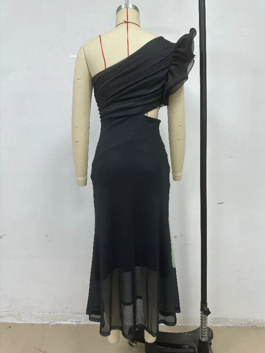 One-shoulder silhouette: A stylish diagonal neckline and sleeveless design that beautifully highlights the décolletage.