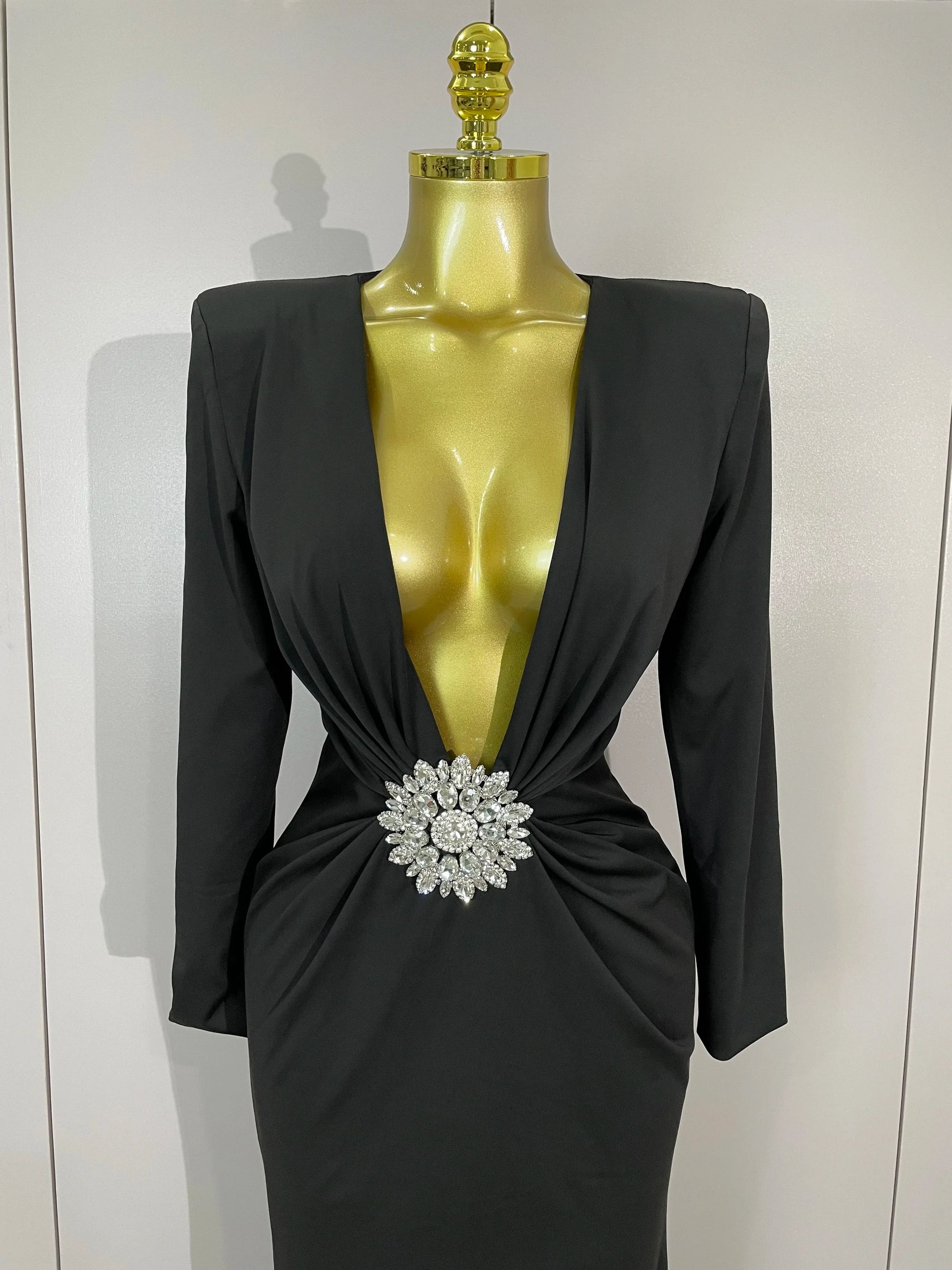 Step into Spring 2025 with this sleek Golden Atelier Full Sleeve V-Neck Ankle-Length Dress. Crafted from polyester with a slight stretch elasticity, this slim-fit dress features a chic V-Neckline and full regular sleeves. It boasts a straight silhouette with a natural waistline and is adorned with elegant appliques. The solid pattern and ankle length complete this regular-type dress, available in White, Red, and Black, with a convenient zipper closure, perfect for club or party events across all seasons.
