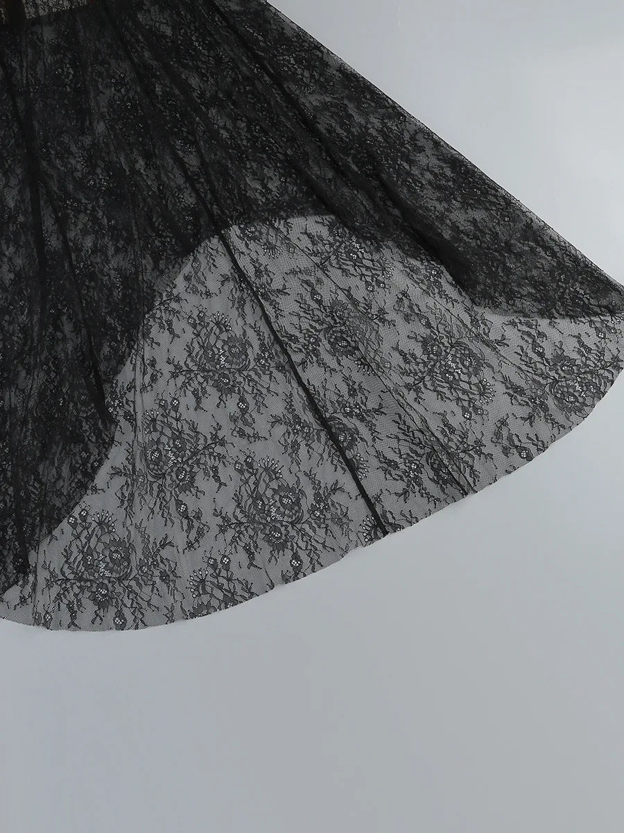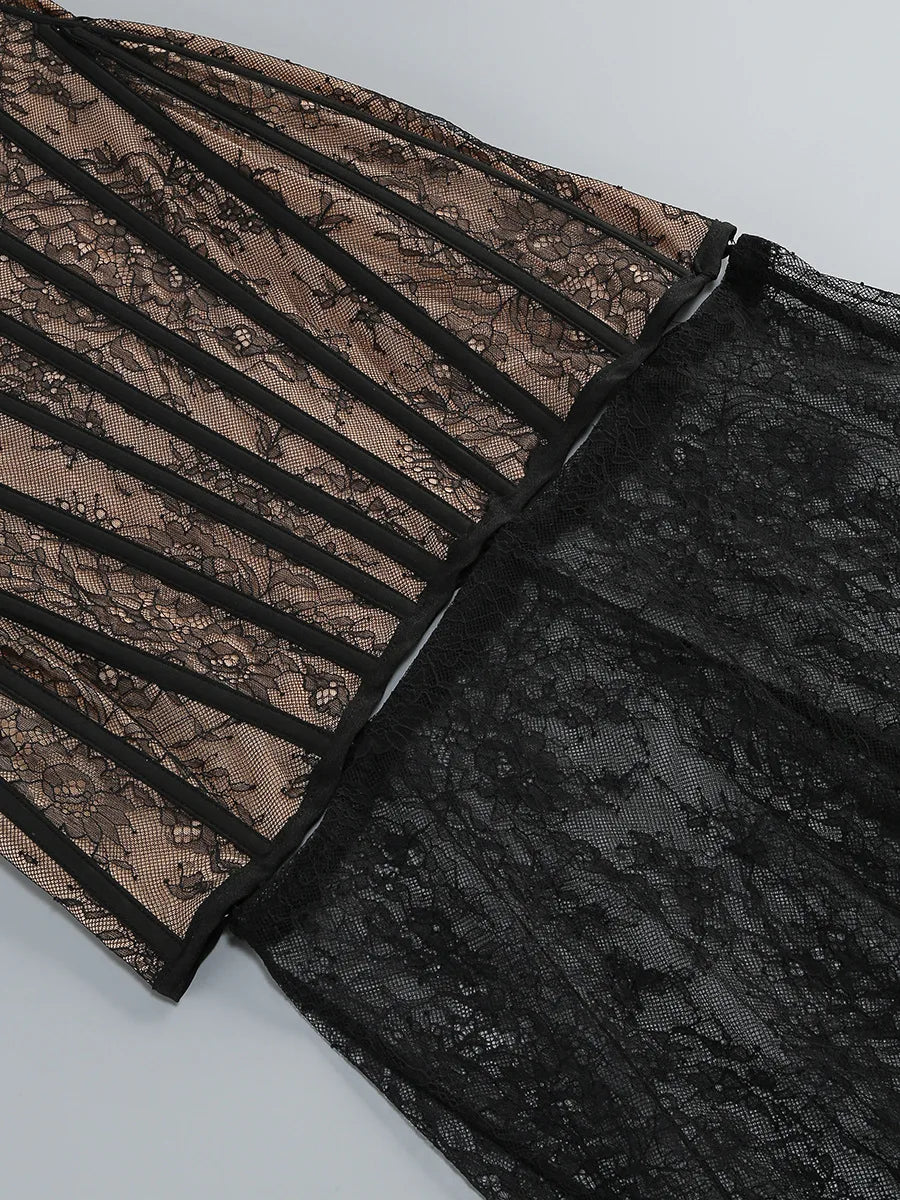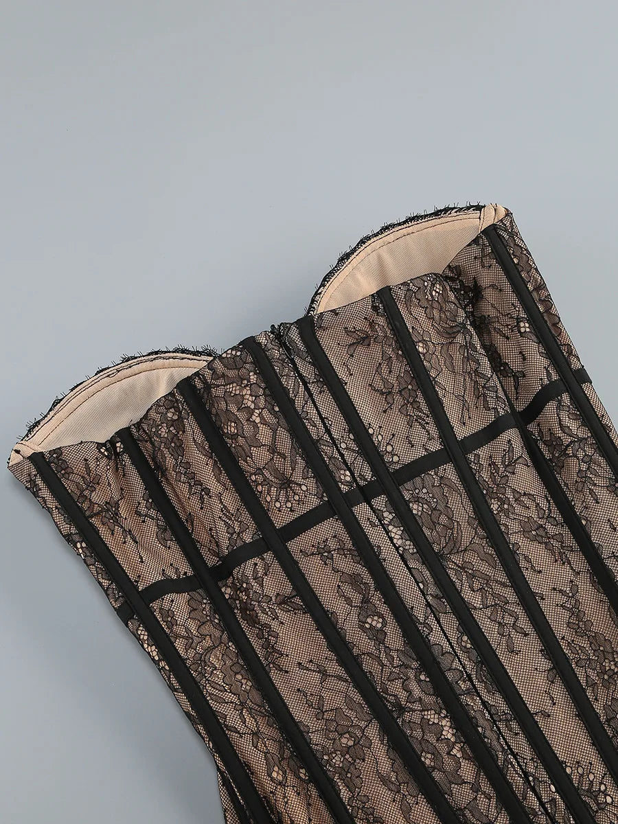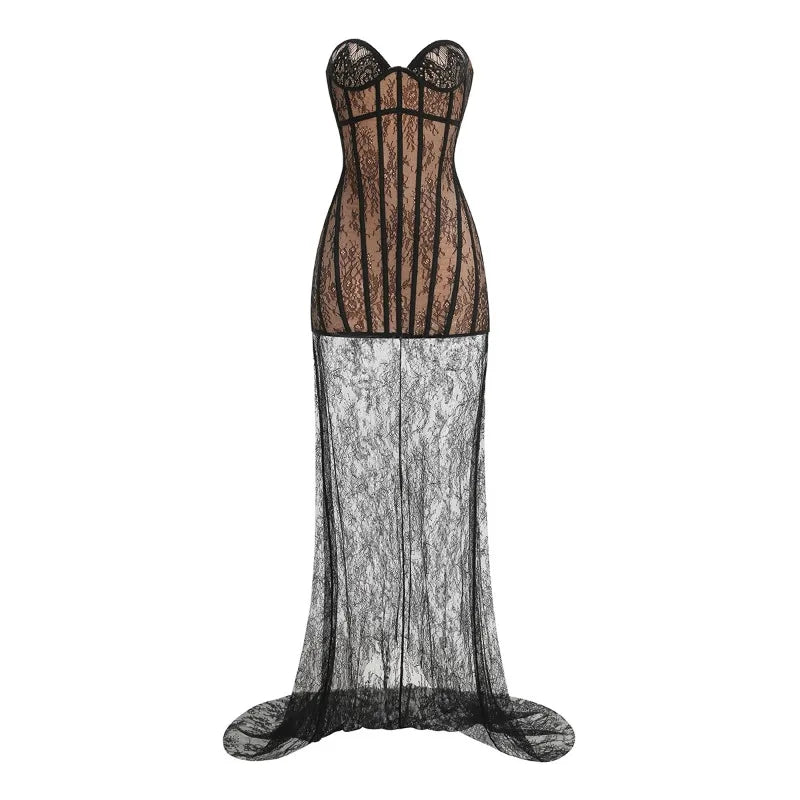 Lace Corset Mesh Maxi Dress with Detachable Hem