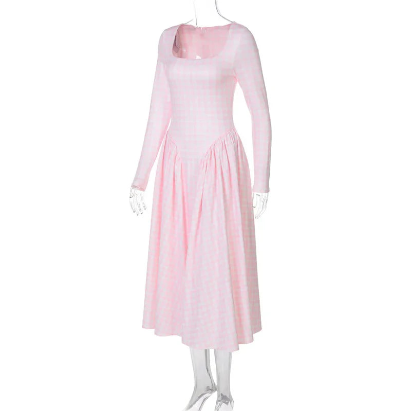 Plaid Maxi Dress | Square Neck Cottagecore Look