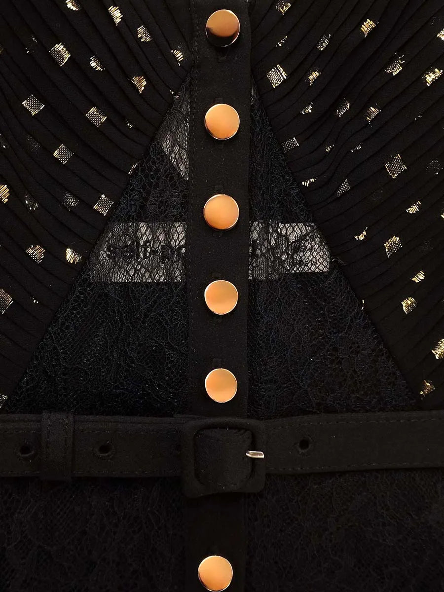 Pleated Sheer Cut-Out Buttoned Maxi Dress