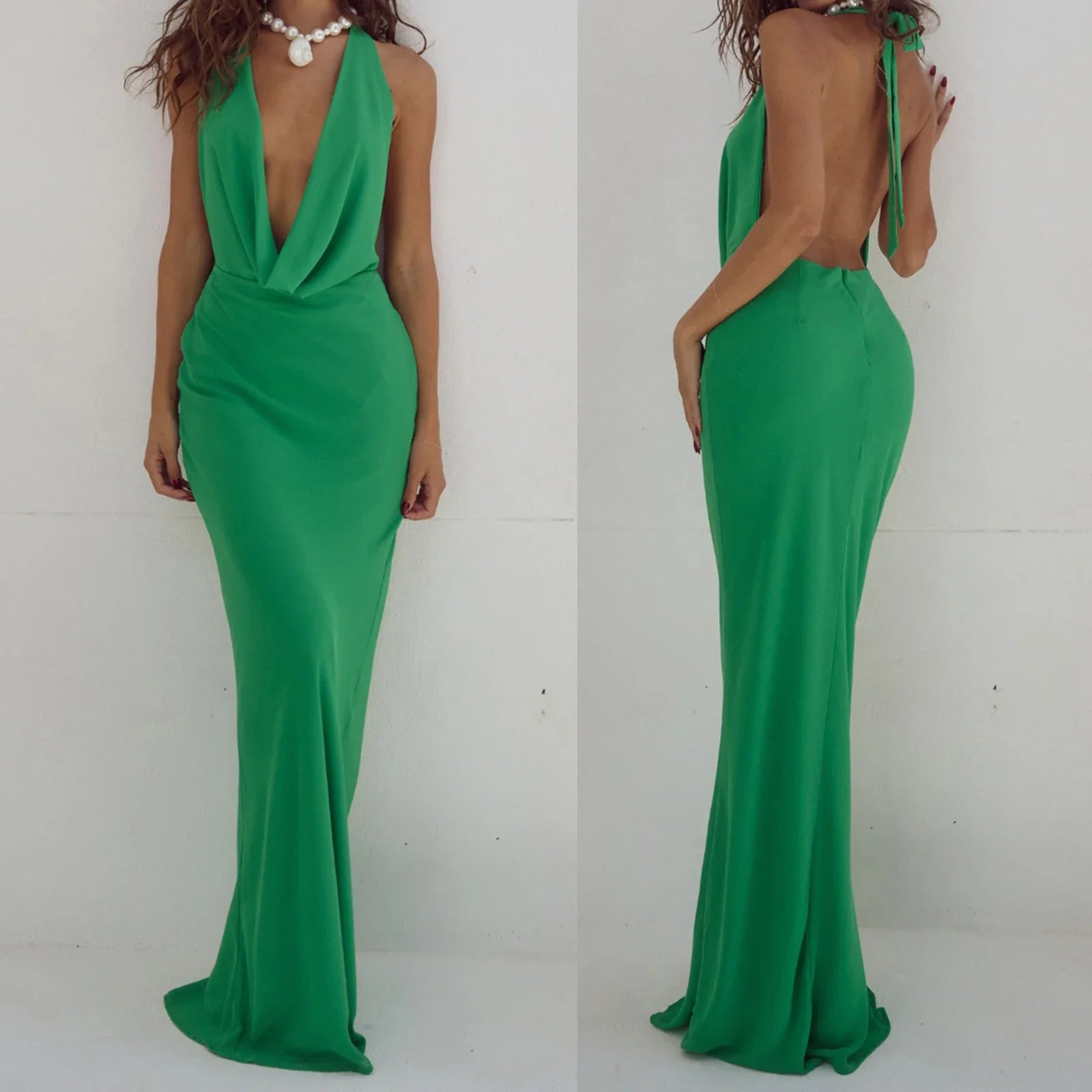 Flattering Halter V-Neck: The halter neckline and backless design create a graceful and refined silhouette.