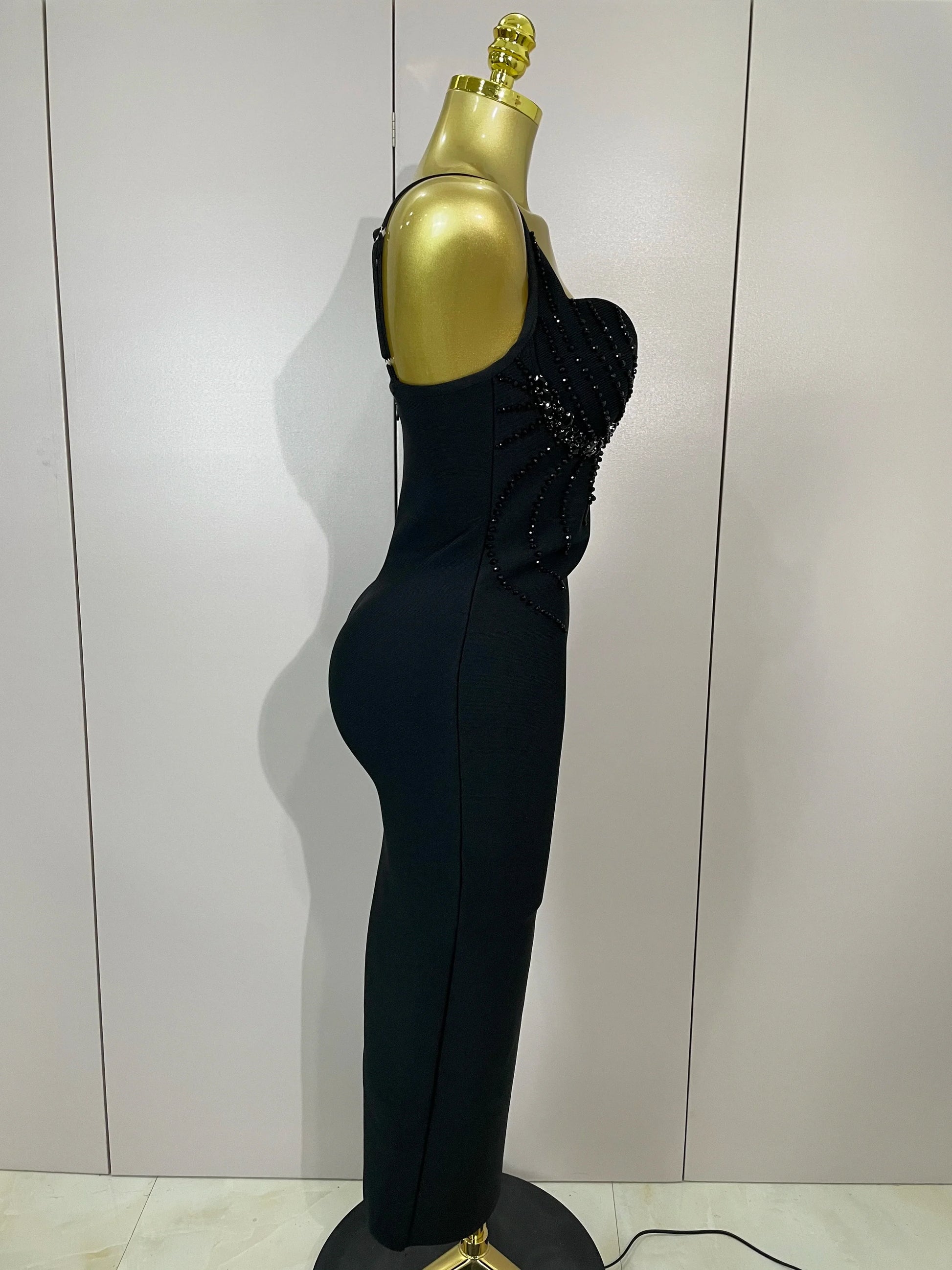 Step into Summer 2025 with this sleek Golden Atelier Red & Black Sleeveless V-Neck Mid-Calf Dress. Crafted from polyester with a slight stretch elasticity, this slim-fit camisole-type dress features a chic V-neckline and spaghetti straps. It boasts a straight silhouette with a natural waistline and is adorned with elegant appliques. The solid pattern and mid-calf length complete this dress, available in Red and Black, with a convenient zipper closure, perfect for club or party events across all seasons.