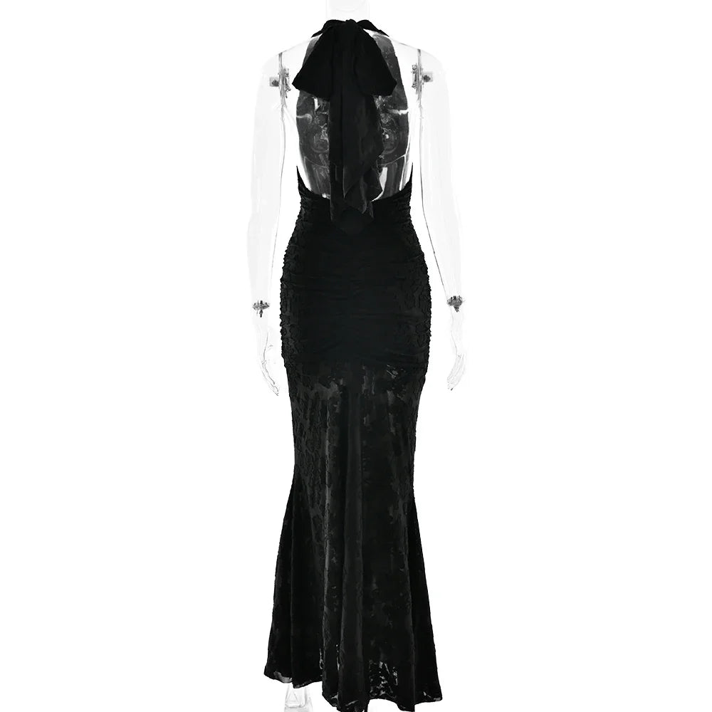 Plunge halter neckline with open back