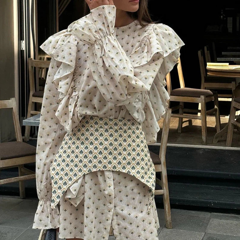 Ruffle Waist Mini Dress | Soft Bloom Print with Flared Sleeves