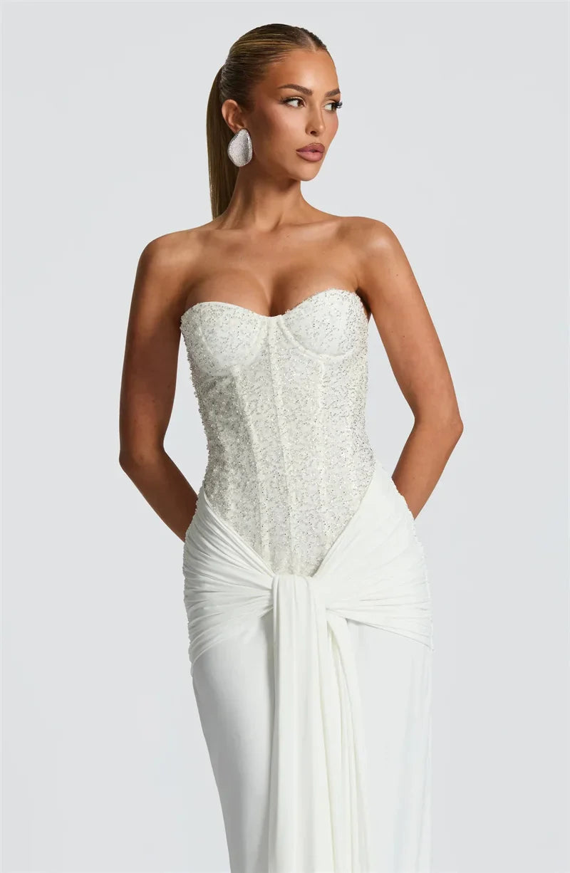 Elegance meets radiance in this strapless sequin gown. Designed with a sculpted bodice and softly draped waist, it flows into a graceful floor-length silhouette — a statement piece that catches the light and commands the room. Perfect for galas, black-tie events, or any night where luxury is the dress code.