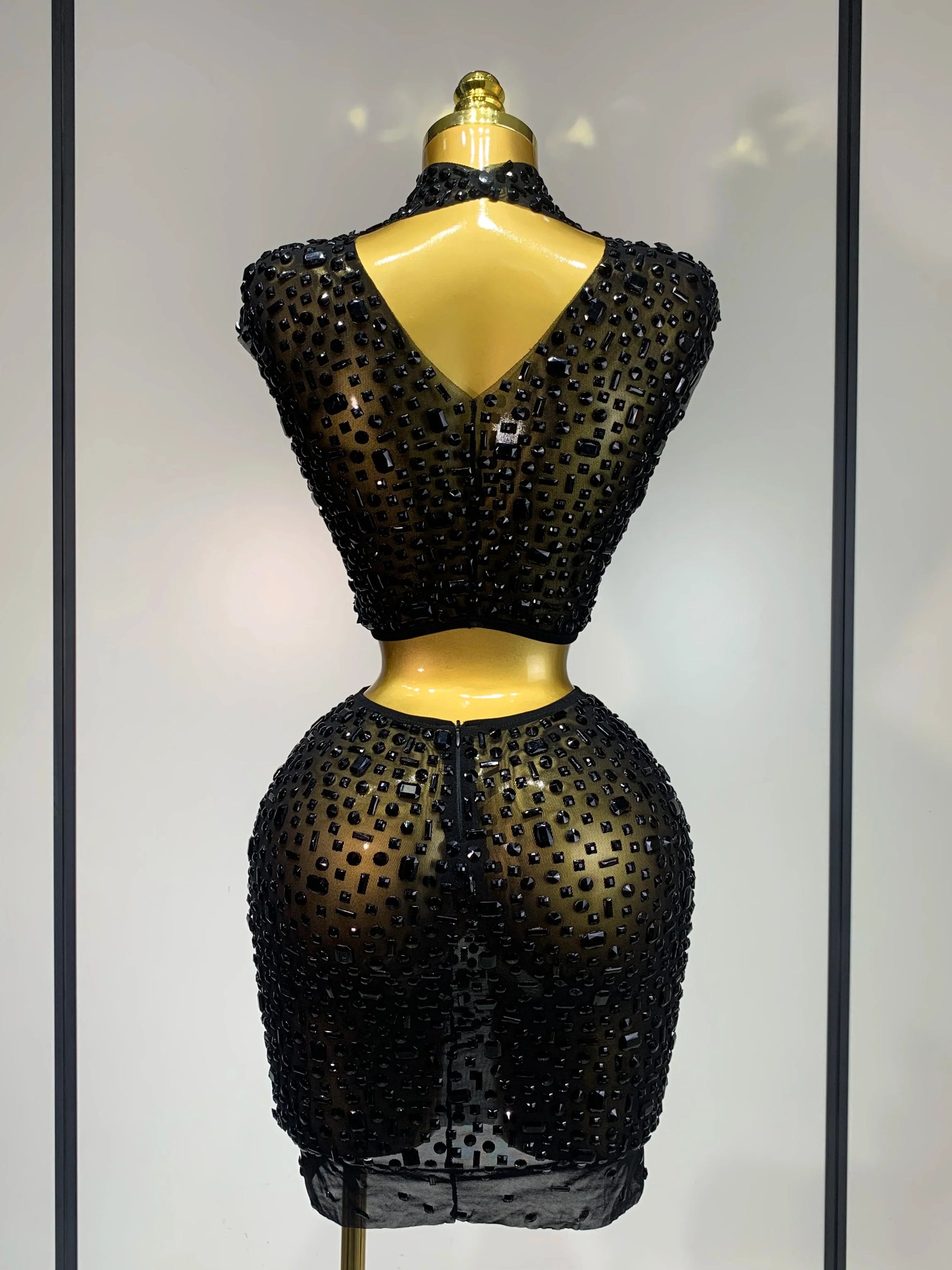 Step into Winter 2025 and beyond with this dazzling Golden Atelier Sleeveless Turtleneck Mini Dress. Crafted from polyester with high stretch elasticity, this slim-fit dress features a chic turtleneck neckline and a sleeveless design. It boasts a sleek sheath silhouette with a natural waistline and is adorned with shimmering diamonds. The solid pattern and mini length complete this chest-wrapping type dress, available in Black and Gold, with a convenient pullover closure, perfect for club or party events across all seasons.