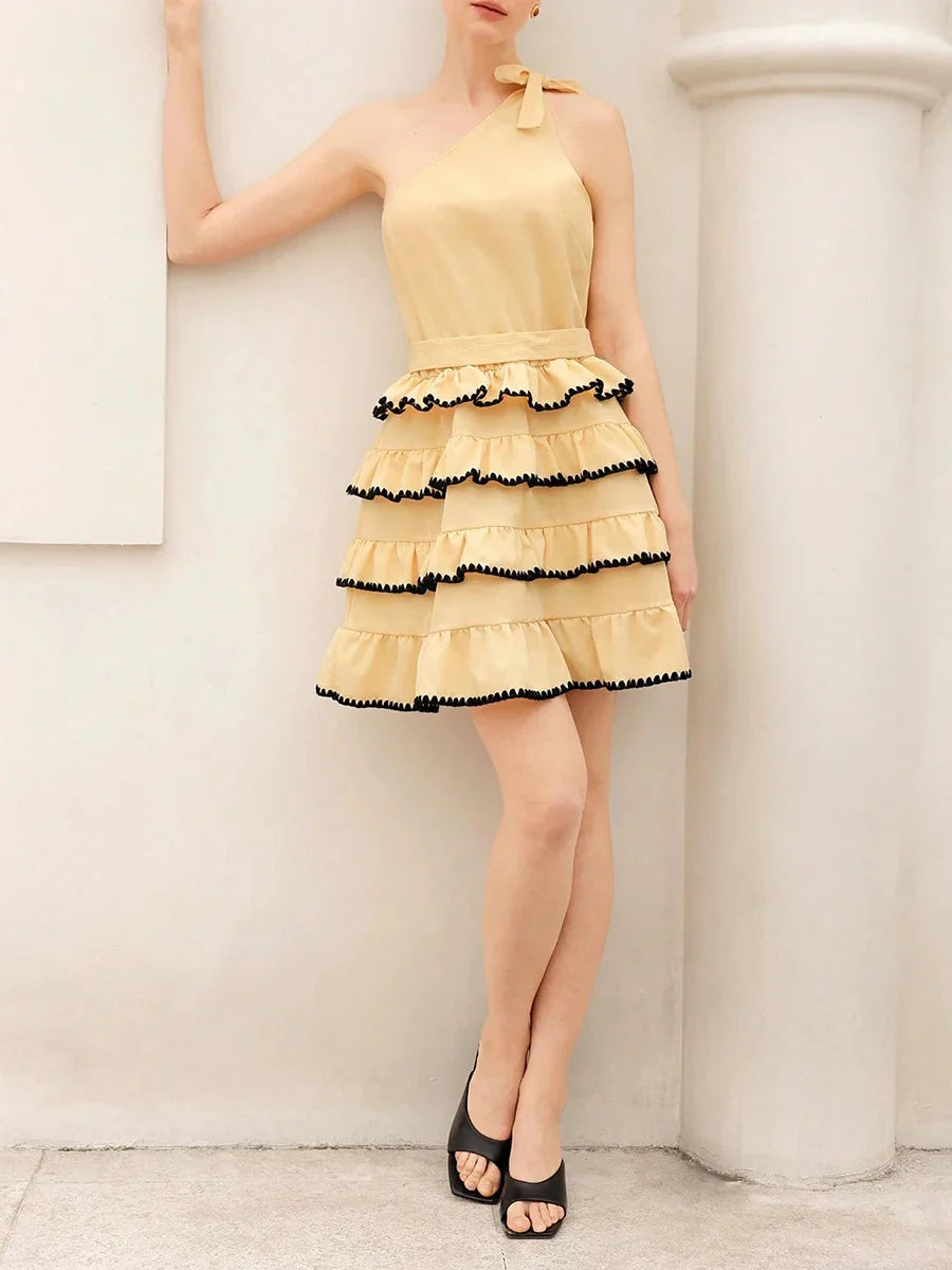 Yellow One-Shoulder Ruffle Dress | Tiered Mini for Summer Parties